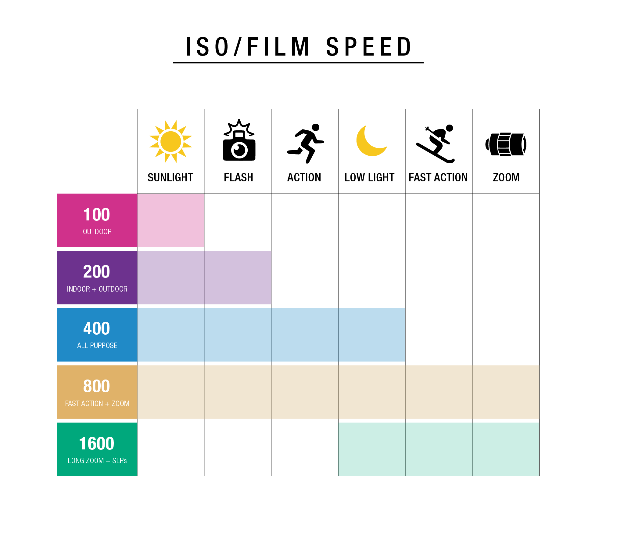 ISO: How sensitive the film is to light (aka Film Speed)