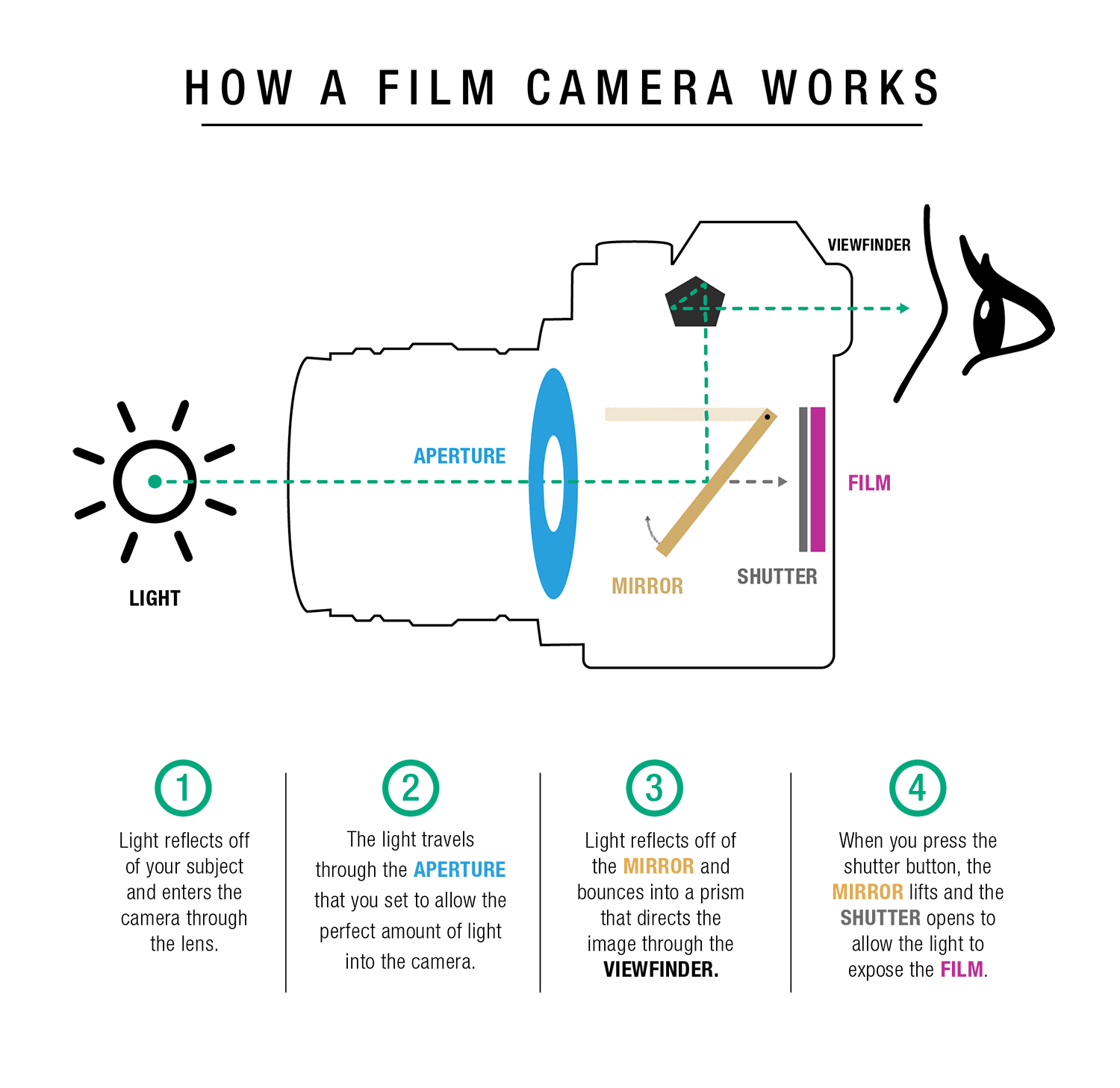 Shutter Speed: How long the light hits the film